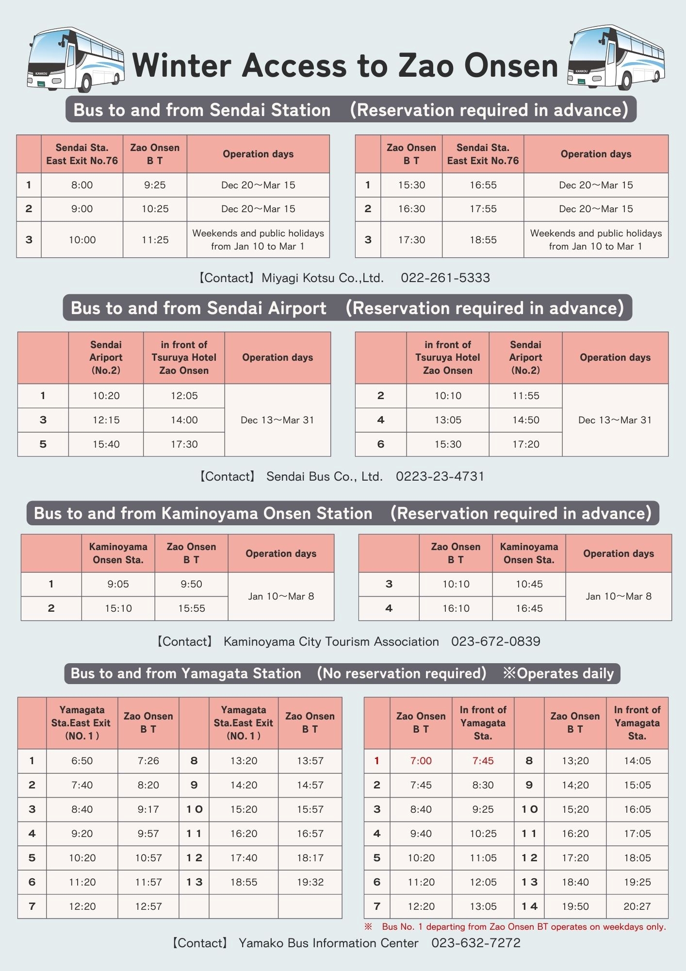 During the winter season, buses between Yamagata Station and Zao Onsen are expected to be very crowded.