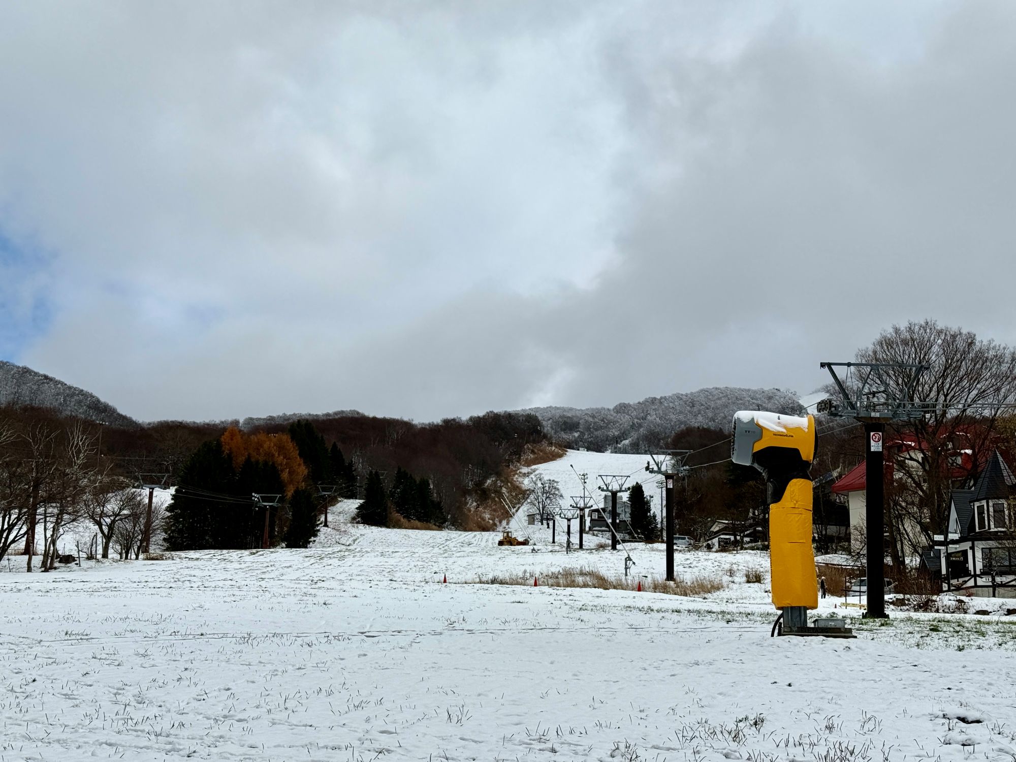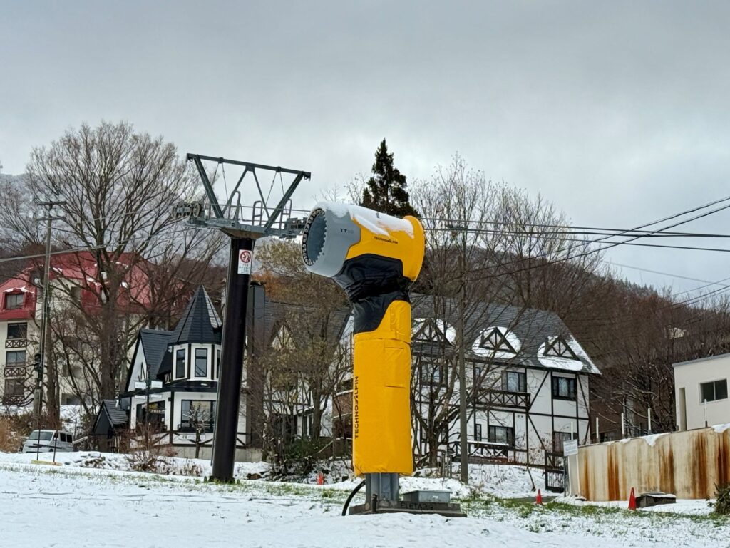 ジュピア目の前に広がる「上の台ゲレンデ」を整備する人工降雪機は、今回の導入で合計3機となりました。